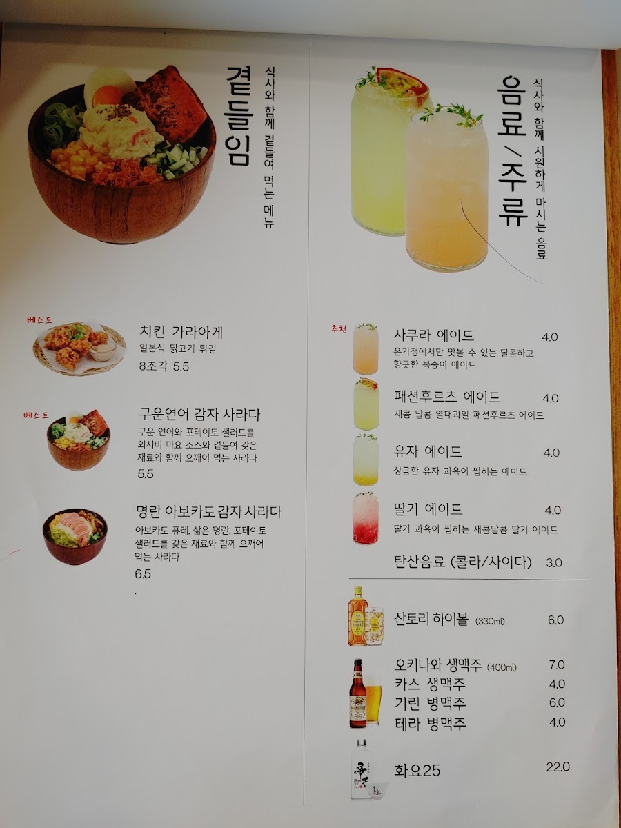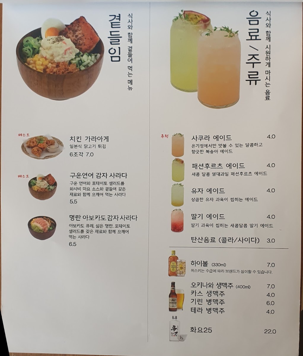 For seafood lovers, the 연어장 텐동 features tender salmon, ideal for mixing with rice, and the grilled salmon potato salad adds a delightful crunch.