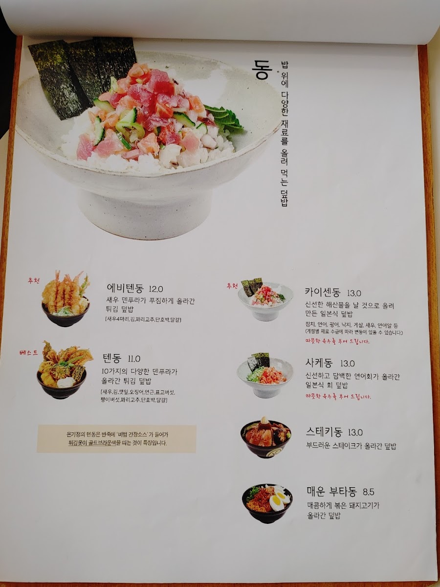 Highlights from the menu include the highly acclaimed 스테키 텐동, which pairs perfectly crispy tempura with succulent steak and mini udon.