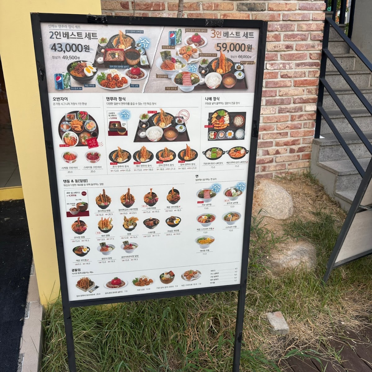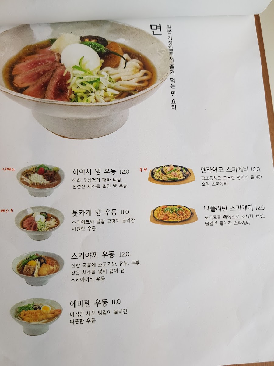 Those yearning for hearty comfort can indulge in the 매운덴푸라김치나베, served bubbling on a personal stove, making it a perfect option for those seeking warmth.